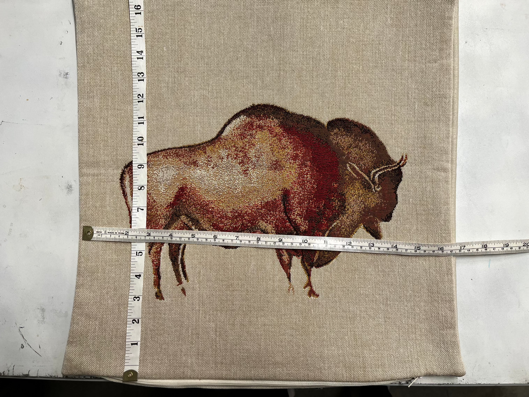 -Finished needlepoint with linen backing and zipper (no pillow insert), this pillow cover coordinates with "Lone Elk" and "Bucking Elks" both also finished projects. Buy all three