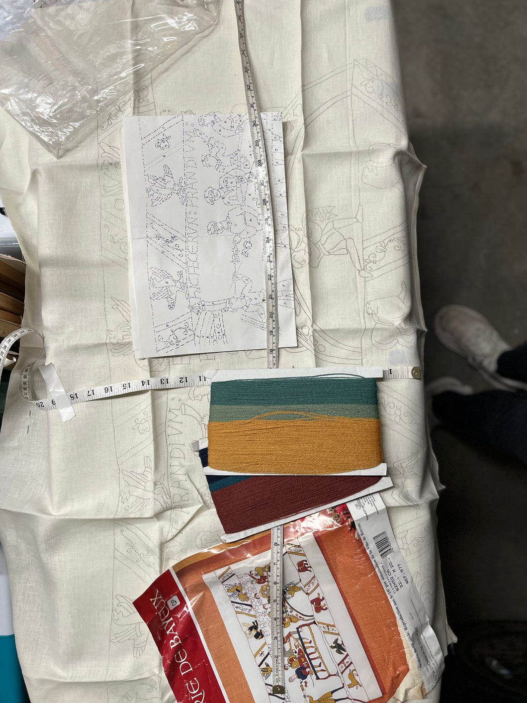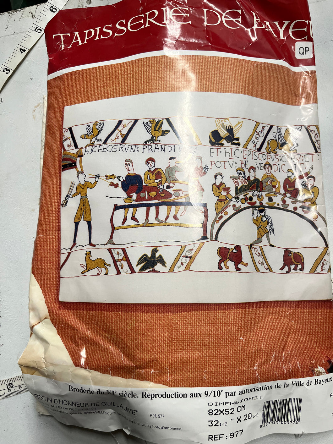 Packaged fabric with Bayeux Tapestry original package design.