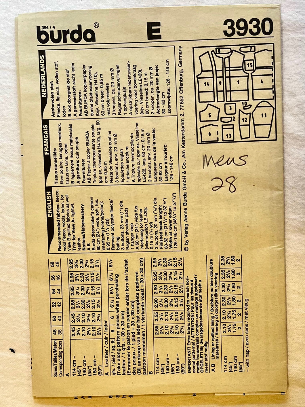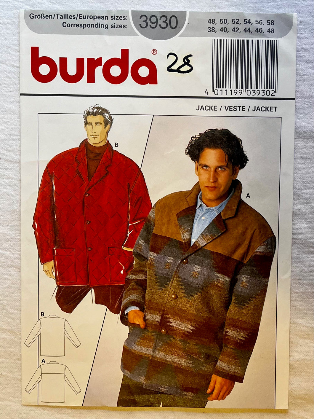 Burda 3930 PARTIALLY CUT Men's Wear Sizes 38-48